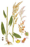 Vino de acedera: Se vierten en un litro de vino de buena calidad 15 g. de raiz de polvo; se deja en maceracion durante siete dias y despues se filtra el liquido con el papel adecuado. Se toma un vasito pequeño en las dos principales comidas.