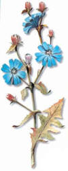 Descripcion: planta herbacea y vivaz de la familia de las compuestas, de tallos rectos, que suele alcanzar de 50 a 60 cm de altura. Las flores son de un bello color azul, y sus petalos acaban en cinco finas puntas; se cierran por la noche, o cuando hace mal tiempo. Toda las partes de la planta, incluso su latex, tienen sabor amargo.