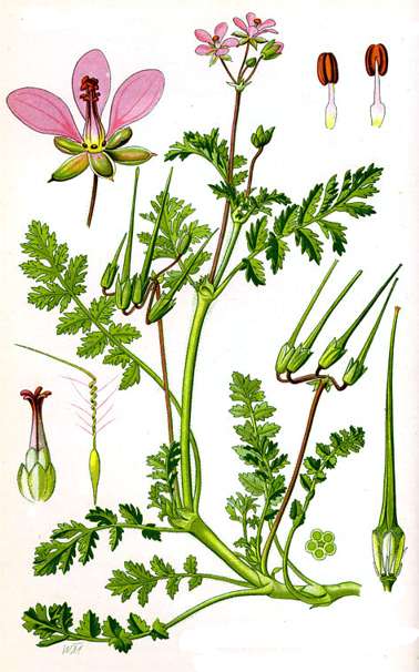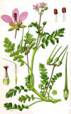 claro pinnadas y flores de color violeta rojizo.