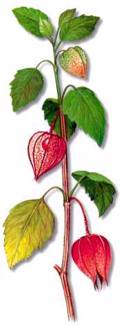 Descripcion: planta de la familia de las Solanaceas, que alcanza hasta un metro de altura. Su fruto es una baya de color anaranjado o rojo, del tamaño de una cereza, recubierto por un caliz rojo escarlata que se hincha formando una especie de vejiga denominada ”farolillo”.