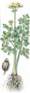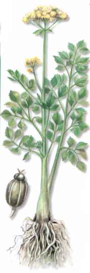 Descripcion: planta bienal de la familia de las Umbeliferas, que alcanza de 30 a 90 cms. de altura. Es facilmente reconocible por su tallo erguido y acanalado, sus hojas de color verde oscuro y su peculiar aroma.