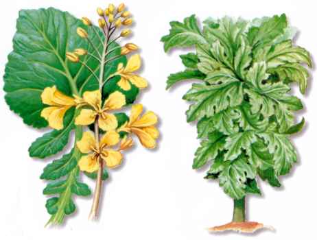 cruciferas, con hojas grandes muy divididas y de consistencia