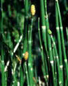 emerge los tallos fertiles, rojizos, simples, con una disposicion