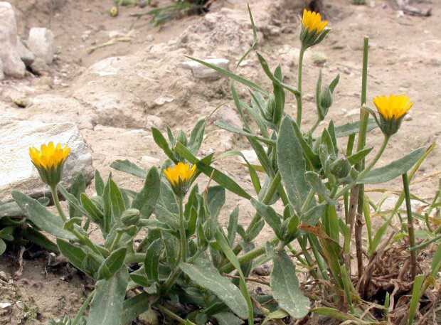 Sus hojas son de dos tipos: las inferiores, en forma de rabillo, y las superiores, que no tienen esta forma y son algo peludas. Esta planta se cria en todo tipo de tierras de labranza.