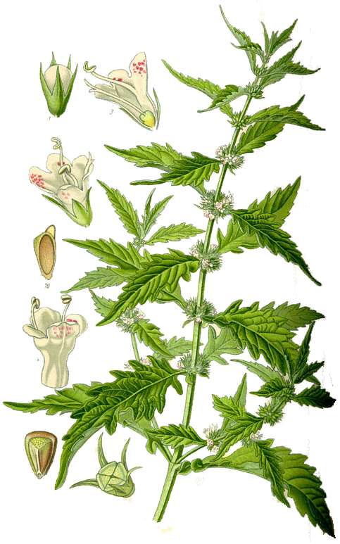 La menta de lobo es una hierba vivaz, perteneciente a la familia de las labiadas. Posee un tallo erguido, cuadrado, con hojas elipticas, opuestas y profundamente dentadas, en cuyas axilas brotan verticilos impares con unas pequeñas flores violaceas. Se cria sobre todo en la orilla de los arroyos, acequias y por cualquier zona donde la tierra conserve un poco de humedad. Se encuentra facilmente en terrenos ricos en nitrogeno. Esta planta fue muy usada durante la edad media para curar la malaria.