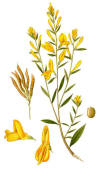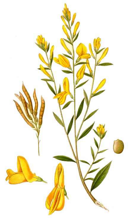 Contiene una cierta cantidad de aceite esencial, que supone el 0,025 % del peso total de la planta y que se encuentra en la sumidad florida. En las flores encontramos luteolina, colorante amarillo que junto con la genisteina -que es incolora- se emplea como tinte natural. Tambien posee acido tanico, de sabor amargo, que puede emplearse con cierto caracter aperitivo, siempre en pequeñas cantidades. Contiene asimismo azucar, mucilago y cierta cantidad de vitamina C, lo que hace mas agradable su ingesta cuando se buscan sus efectos mas importantes: como diuretico si se toma en pequeñas cantidades, o como laxante, purgante e incluso emetico si se va aumentando la dosis.