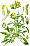 familia de las leguminosas. Es una hierba pequeña, cubierta de